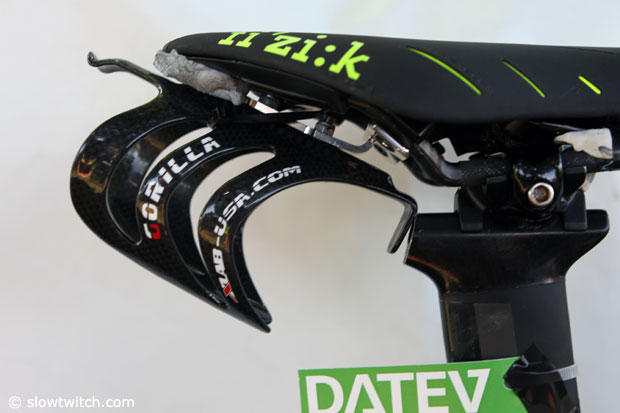An XLab Gorilla cage below the saddle is custom mounted, and the bluetac between saddle and cage prevents rattling.