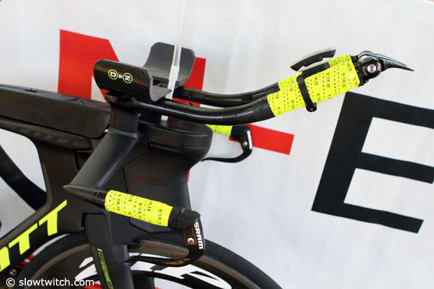 Luke McKenzie got his hands on the new Scott Plasma 5 a few weeks before the 2014 Datev Challenge Roth and here is a look at the race bike of this 178 cm (5'10") tall and 70 kg (154.5 lbs) athlete. McKenzie, who finished second at the GoPro Ironman World Championships in Kona last October, ended up 10th in Roth.