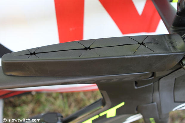 Luke McKenzie is a SRAM athlete and he rides 55-42 chainrings on a 172.5mm SRAM crank combined with a Quarq power meter. Pedals are by Speedplay.