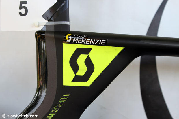 McKenzie allowed us to move his 54cm race bike to the side as he got ready to check it in the day before the race.