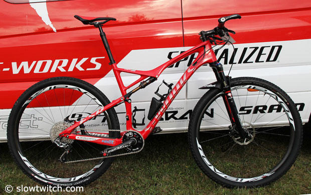 The cockpit of this version had mixed arts on it. Typically the XX1 version would have SRAM brakes too.