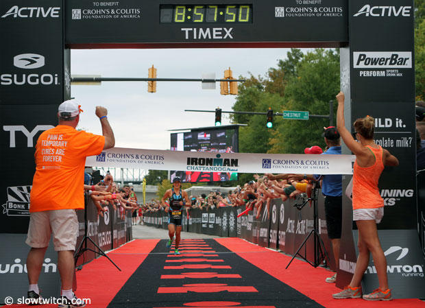 On the rolling 2 lap course through Tennessee and Georgia Cleaver pushed hard to stay at bay, but Naeth inched closer and closer and caught the Kiwi near the 70 mile mark. In the final 46 miles Naeth steadily pulled away and by the time the Canadian reached T2 she had a 12 minute advantage over Cleaver and the gap to the other competitors was even more significant. Naeth recorded a race best 4:50:03 bike split on a relatively mild day in the Tennessee Valley. Locals actually call the area where the bike loops took place Triathlon Valley, because it is the only reasonably flat course that can be ridden from Chattanooga without having to crest a big mountain.