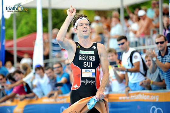 It is hard to imagine that the consistently excellent Seven Riederer of Switzerland, the man who won the bronze medal a decade ago at the Athens Olympic Triathlon, had only won a single ITU World Cup in his career before this weekend. But sure enough, reliable Riederer was just 10 seconds back of the swim leader, perfectly positioned in 10th place starting the bike.