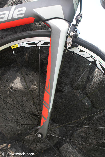 Images of the new Cannondale Slice have been trickling out with several Pros already racing on these new machines, but today in Kona the actual bikes were launched. Right now it seems that new bikes either fall into the heavily integrated category or the keep it simple one. This Slice certainly falls into the latter camp.