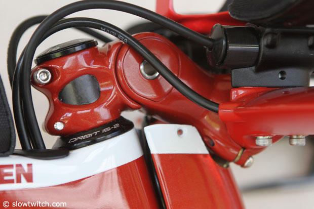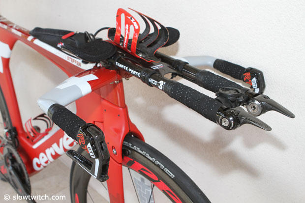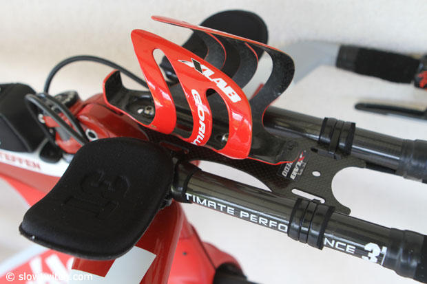 In order to get the right fit Steffen and the Cervelo team opted for a 3T 100mm Arxa stem that is adjustable, but is set up here at – 45. The beard was custom modified to accept the stem.