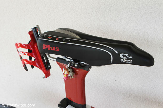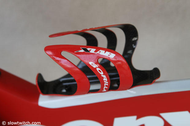 Steffen rides a Cobb Plus sadddle and has another XLAb cage mounted behind it, plus the lucky charms stay close too.