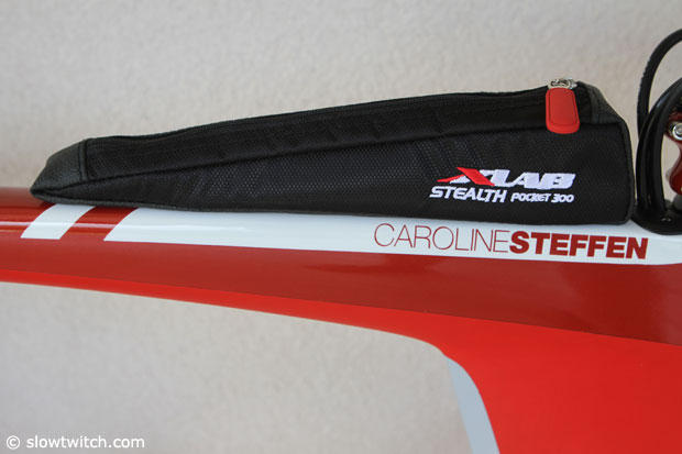 Steffen uses an XLab Stealth Pocket 300 on the top tube.