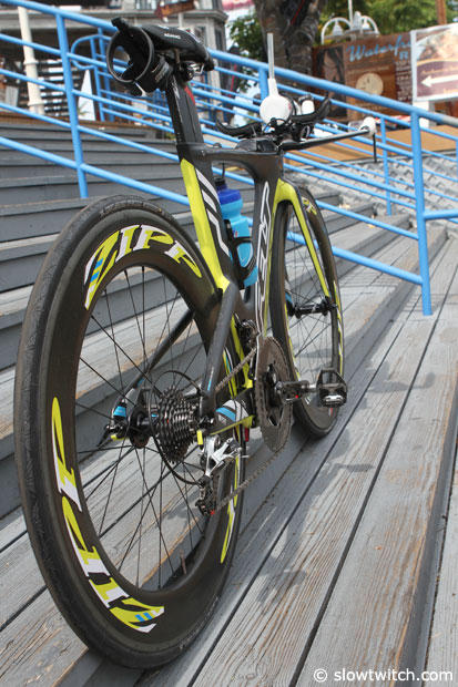 The 2-time Ironman World Champion Mirinda Carfrae is an obvious favorite again this year for the Go Pro World Champs and I looked closer at her fresh custom Felt IA in Kona while she was signing autographs.