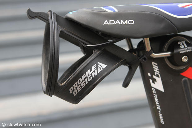 Zipties ensure that the Profile Design cage stays tucked tightly under the saddle.