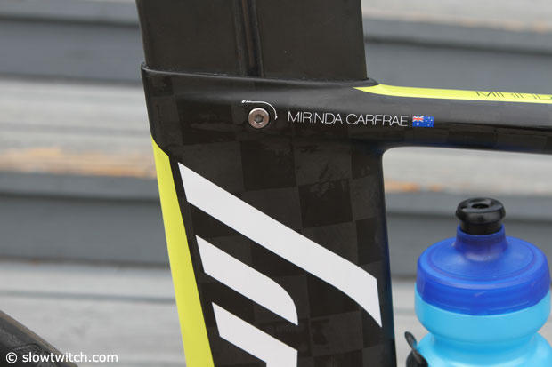 The 2-time Ironman World Champion Mirinda Carfrae is an obvious favorite again this year for the Go Pro World Champs and I looked closer at her fresh custom Felt IA in Kona while she was signing autographs.