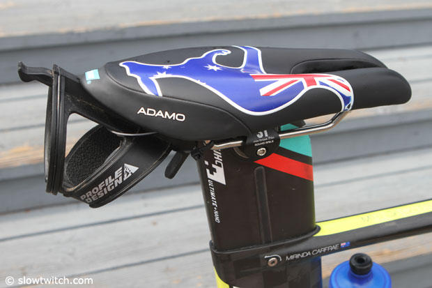 Rinny rides a custom ISM Adamo saddle but hey, that graphic on the post seems to be from her previous machine.