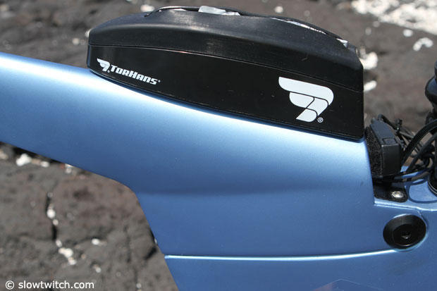 The Torhans box fits very nicely and it seems as if it was designed for this specific bike. Dimond offers mount options on the top tube for those who want it.