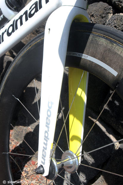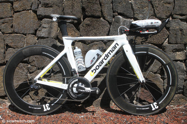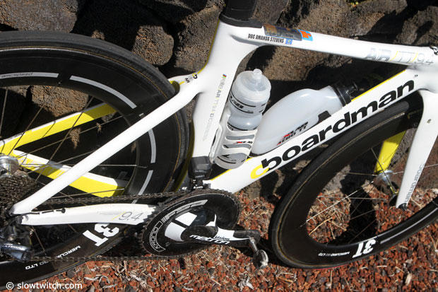 Doc Amanda Stevens was first out of the water in Kona in 54:25 and then charged up the road with Jodie Swallow. In the end she drifted back in the standings with a 3:34:26 run but we will surely see more from her. Here now is a look at her Boardman Air TT 9.4.