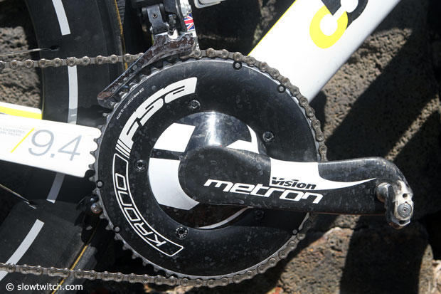 The Vision Metron 165mm cranks on Amanda Stevens' Boardman have 55/42 FSA Krono rings and Speedplay pedals.