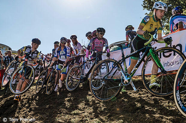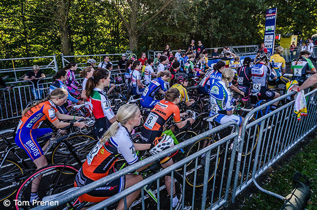 Intense focus on the start line with Sophie De Boer, Ellen van Loy and Katie Compton from left to right.