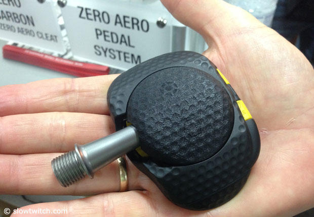 What pedals got "subtracted" when a competitor in the race chose a Garmin pedal + power meter? That subtraction was probably felt harder by Speedplay than any other company, which "lost" about 50 pedals from its 2013 total of 406 in the race in 2013. (Will its new aero pedal and walkable cleats – pictured below – give this premier brand new momentum?) Time took a small hit year-over-year, down 6 pedals from last year's total of 91, as did the winner of the pedal category both last year and this – Look – down from 815 pedals to 788. Shimano is the gainer, increasing from 695 pedals to 708.