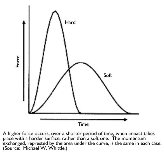 Most runners tend to wear shoes, and we all know that the added material beneath our feet act as cushioning, along with the natural cushioning on the soles of our feet. Commonly used in shoes are viscoelastic materials, present in the midsole. These materials are usually known chemically as polyethylene, polyvinyl chloride, polyurethane, among others. As with other elastic materials, these substances provide an effective means to redistribute the pressure underfoot. Since energy cannot be "lost", what occurs is the spread of energy over a greater amount of time and release of some energy in the form of sound and heat. The reduction of overall pressure reduces local pressures and stress on the foot and other skeletal structures as the shockwave of each step promulgates upward through the body. This shockwave can damage soft tissue. Reducing the severity of the impact has been shown to improve overuse injuries including joint pain, stress fractures and possibly even osteoarthritis. In healthy individuals, a 10-20mm pad of fat on the bottom of the foot acts as a "viscoelastic shock absorber". Age, disease, and medication (ie- injected corticosteroids) can degrade the fat pad.
