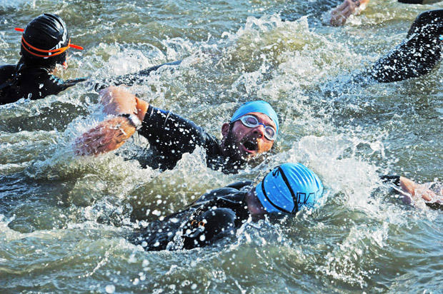 Most of the 2,000-plus triathletes in the 2.4-mile swim at the inaugural Ironman Boulder.