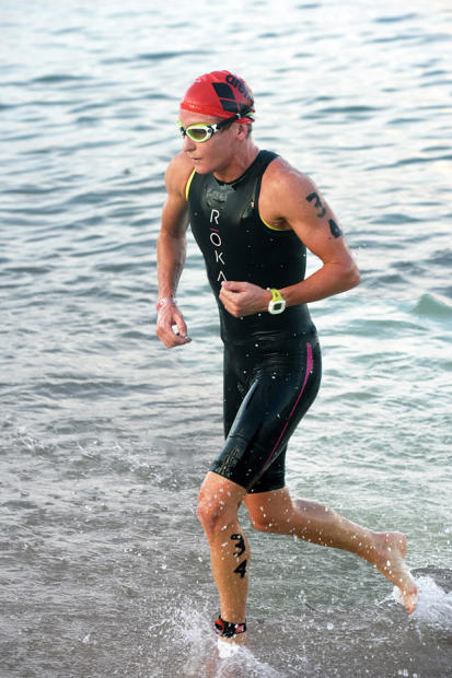While two-time Ironman 70.3 World Champion Melissa Hauschildt is better known for her run and bike skills, she has worked hard to become a proficient swimmer. At Challenge Laguna Phuket.