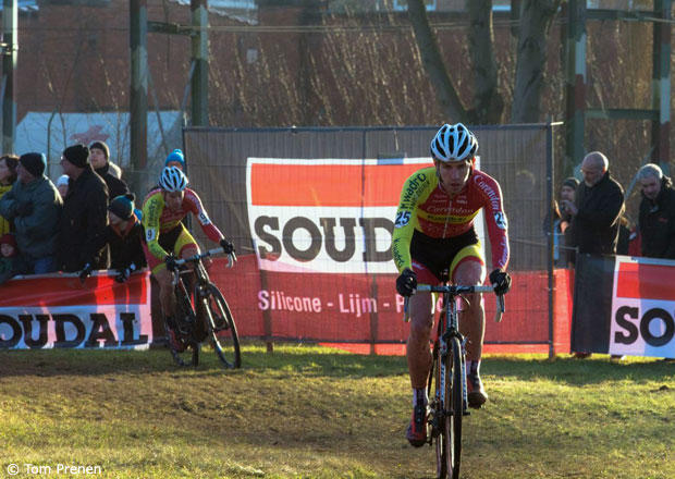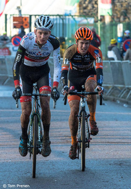 Mathieu Van Der Poel and Joerie Adams riding well in the front.