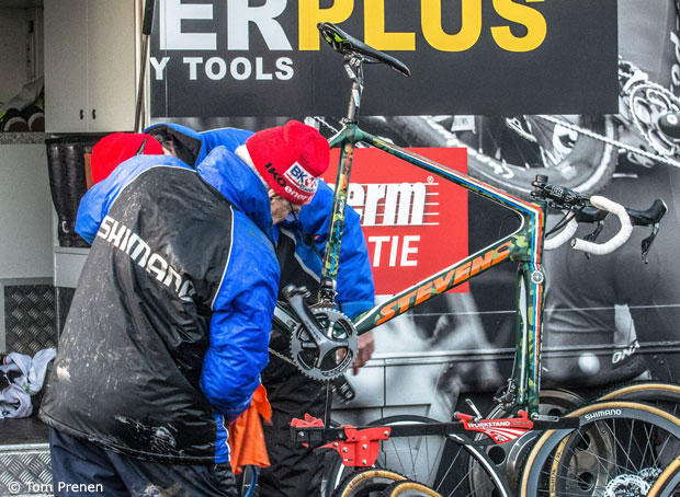 Mathieu Van Der Poel's camouflaged Stevens race bike also gets some love.