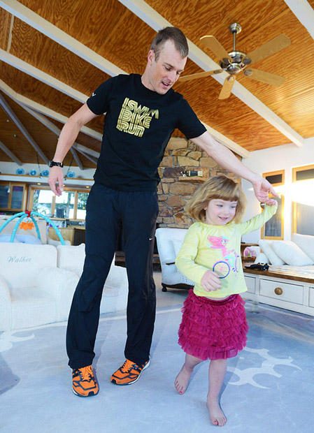 Abu Dhabi International winner Tyler Butterfield dances with daughter Savana before taking her to pre-school.