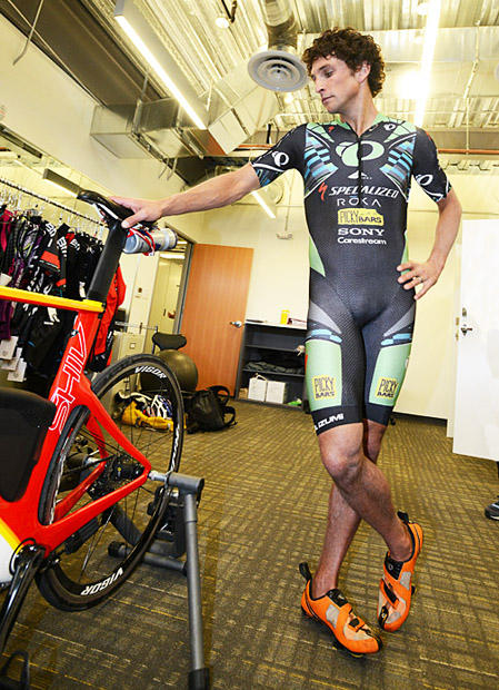 The elegant, relaxed Jesse Thomas gets fitted for his Pearl Izumi kit.