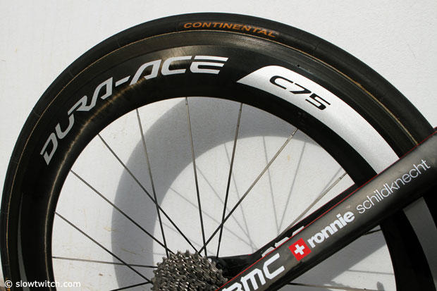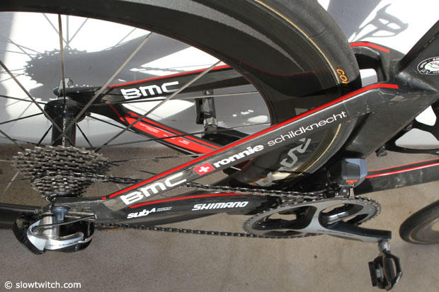 Ronnie Schildknecht has a Shimano C75 wheel on the back of his BMC TM01.