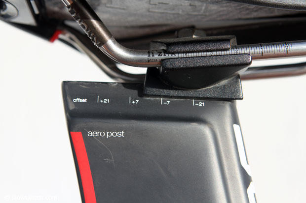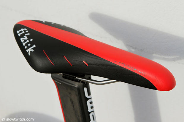 The Fizik Arione saddle with Kium rails matches the color scheme of the bike nicely.