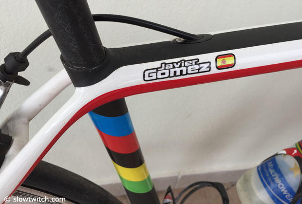 Javier Gomez races and trains on SRAM Red components. We hoped to find prototype electronic, hydraulic or magic components, but it was mechanical gear.