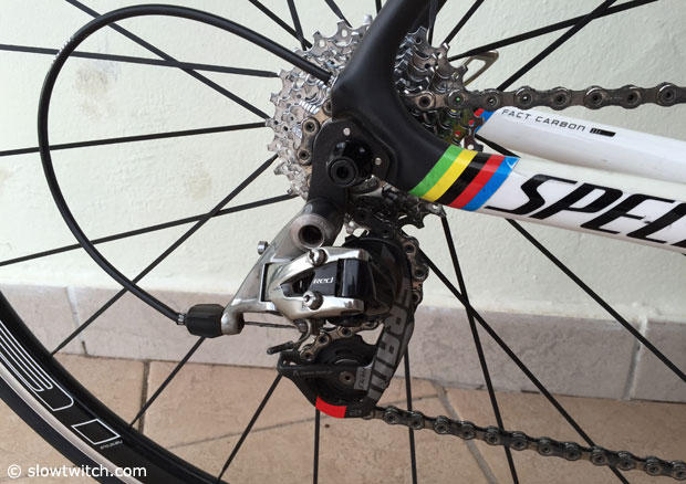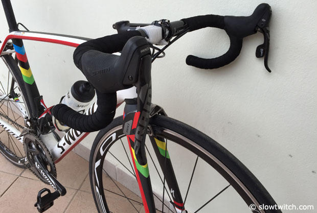 World Champion Javier Gomez is currently on Fuerteventura to get ready for the 2015 WTS race season, and some middle distance races. Word on the street has it for one that he has Challenge Dubai on his mind. While he enjoyed a quiet dinner at Playitas we looked closer at the SRAM equipped Specialized S-Works Tarmac he has with him – it is the bike he raced in Edmonton.