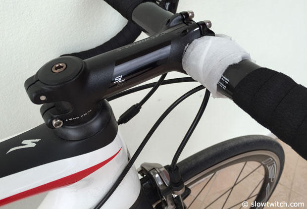 The cockpit on his Tarmac is also from Specialized, and we enjoyed the very fancy watch mount on his bars.