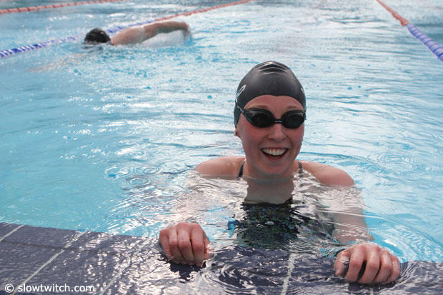 2013 ITU World Champion Non Stanford was working out in the pool and she looks very smooth and comfortable in the water.