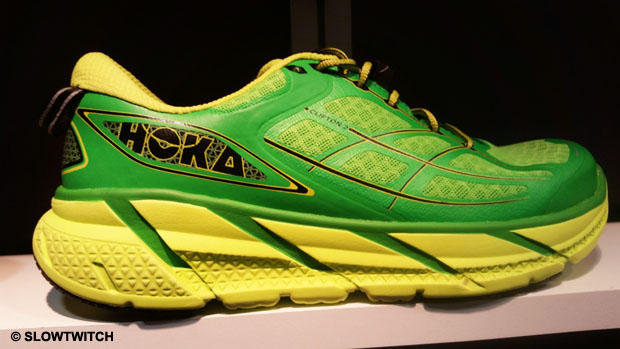 The very catchy neon green and yellow Clifton 2 by Hoka One One.