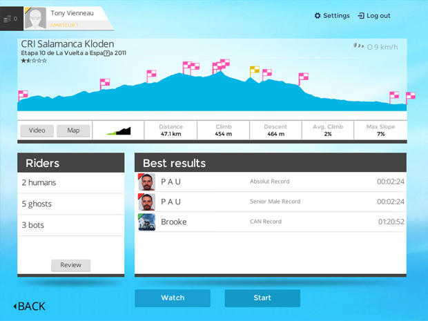 Kinomap allows for public and private races, however based on my observations the user base is much smaller, as there are far fewer open races compared to some of the other programs. This may be the result of the limited courses available, or that users tend toward more private racing. Also, there are few courses with a distance to satisfy most triathletes.