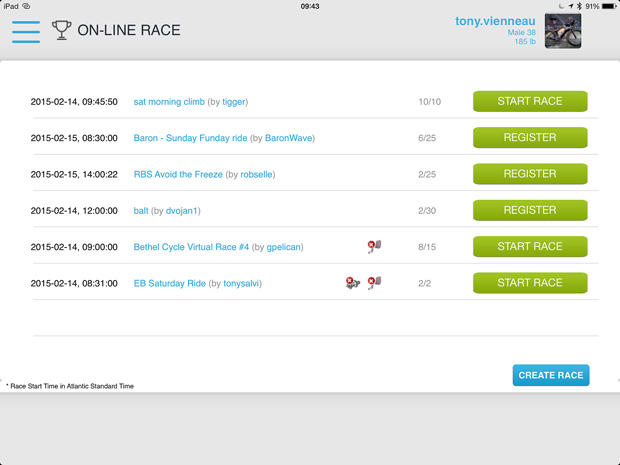 Finally, creating a virtual race on any course is as simple as inviting one or more friends who also subscribe via the training software (private races), or creating a race with an open invite to all subscribed users. I was quite impressed with the ease of this feature and there is a tab to click to view all upcoming virtual races and then you register.
