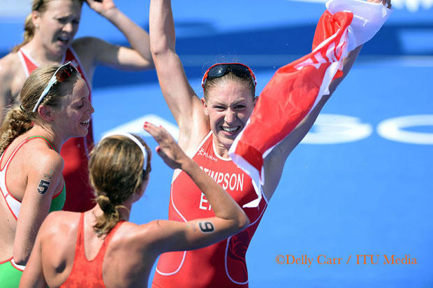 Nearing the end of the bike leg, the smaller, more experienced, and more organized group of seven managed to stay away with a safe gap to seal the top seven spots. Now it was time to sort out the finishing order. Coming into T2 and throwing down fast transitions that left the crowds in awe, the pack of seven women tore onto the run course all within seven seconds of each other, with Jodie Stimpson, as many expected, leading the charge. Jerdonek and Spivey were hot on her heels, closely followed by Cook and Broderick. Reid and Hauser were last out. The early pace among the top four was strong, but Spivey and Cook took their second gamble of the day anyway – a fortunate move for one, but not for the other. By the start of the second lap, Cook had a three seconds’ gap on Stimpson, yet Spivey was fighting to recover from the earlier efforts and hang onto Hauser’s pace for sixth place. Nearing 1K to go, Cook had handily broken away from Stimpson and was striding her way to a victory. Jerdonek was just off Stimpson’s pace, but still digging to secure the final podium spot, ready to pounce at any sign of weakness from Stimpson, but there was none to be seen.