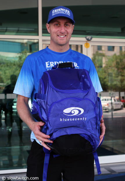 Michael Raelert carries the burden of the #1 bib but seemed relaxed. He also showed great respect for Javier Gomez and Tim Reed.