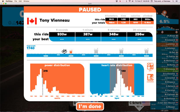Overall, Zwift runs amazingly well and more importantly is fun, if one can say that about indoor cycling. They are forecasting a May, 2015 public release which seems reasonable based on how well the system is operating currently. Should Zwift continue to progress on schedule, add new courses and innovative structured workouts as I expect, they will be the game-changer in cycling apps. Although they are waiting to have a more finished product before charging users, one can expect a subscription-based plan that may be in the vicinity of $10-$20 a month, depending on options.