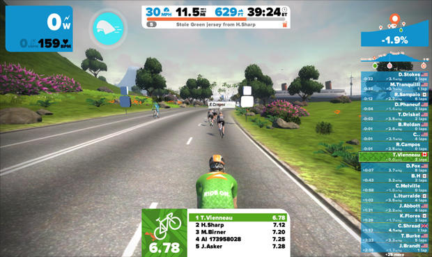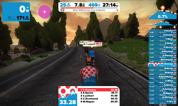 This is where Zwift really begins to set itself apart from the competition. It's addicting to race or compete against other Zwifters to earn special features such as the polka dot, green, or orange jersey for having the fastest segment of the day.