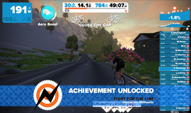 Further, as you hit certain power numbers, speed, or miles ridden, you will get a message of your achievement along with unlocking certain jerseys or bike upgrades. I noticed myself time and again pushing harder for these achievements and competing harder than I would under normal training sessions. I also see numerous similar comments from beta users whose easy ride turned into a race or challenge.