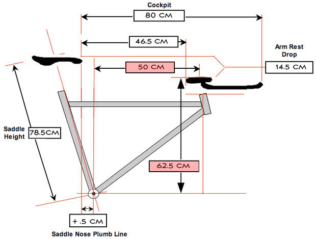 Many of these bike companies are coming up with charts or spreadsheets or calculators, and I wrote about some of them last week. You stick in the horizontal (X) and vertical (Y) dimensions to the armrest pads. Presto, the output is the exact complete bike solution.