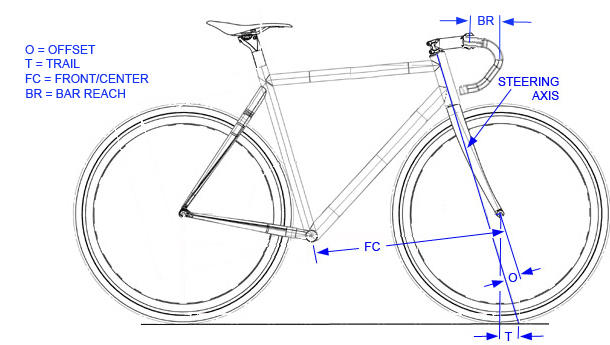 Please don't make too much of this! Me, I can ride, and have ridden, bikes with front/center measures between 612mm and 650mm. They all worked fine. I think about 625mm or 630mm is where I like it. The bikes in this front/center range handle very well for me. When I get less than 610mm I tend to have an awful lot of weight on the front wheel when in the aero position, as in, more than 65%. I'd rather keep that in the range of 55% to 60%. When the front/center gets long the bike can sometimes feel unwieldy, not spry enough, and I have to muscle the bike to turn it.