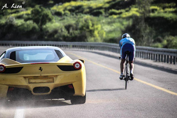 Well, not exactly. The image below was taken by Asaf Lion near Lakhish in Israel during a 40km TT of the ZONE3 – Long Distance Racing & Triathlon Team. Lion captured a fun moment when a Ferrari 458 had a drag race with a Trek Speed Concept 9. There was no word as to who came out victorious, but we likely can figure that one out without knowing much more.