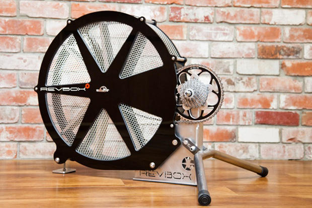 With roots in Germany, UK and New Zealand, the Revbox is a stationary bike trainer that is currently trying to get funding via Kickstarter. With 29 days to go it is currently 7,213 NZD in towards the 50,000 NZD goal and will likely get there. The Revbox features a large 580 mm fan that produces air drag and in a 53/11 gear with 50 rpm reportedly requires 500 watts and at 90 rpm an astounding 1800 watts. But the Revbox does not have an internal power meter as the Wahoo Kickr does, so you will have to have your own one installed on your bike, as you likely already have. There is an optional app that shows power, heart rate, cadence, calories, speed, distance and more and can connect and uploads data to TrainingPeaks and other training programs.