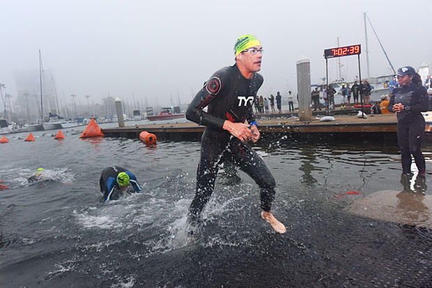 This sea lion appeared to be a bit miffed when forced to leave its accustomed place on the swim start dock. He is probably back on deck the morning after the big triathlon.