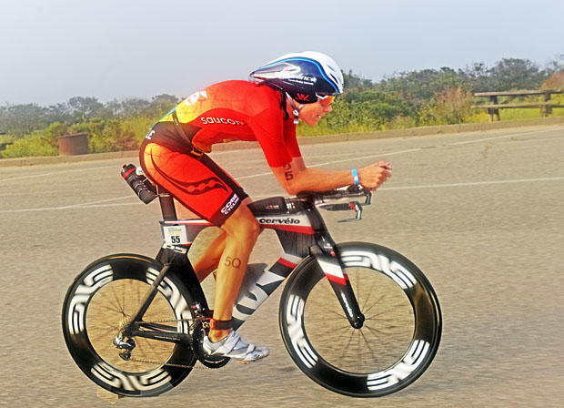 Maik Twelsiek rode a 3rd-fastest 2:07:20 bike leg on his way to 10th place.
