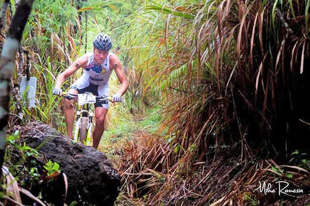 Due to storms in the Western Pacific, race director Eric Tydingco opted for an alternate bike course to minimize the sloppy red mud conditions. Confronting the new course without a pre run, Guam veteran Allen sailed through the obstacles in 1:19:46, 2:52 faster than Weiss, and navigated the waterfall and jungle streams of the run in 46:46, 6:41 faster than Weiss, for a dominating victory.
