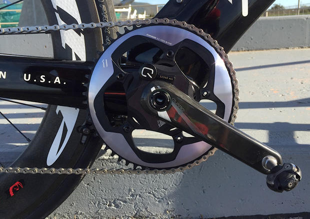 The studies in which SRAM has engaged show a fraction of a watt difference in the efficiency of the 1x drive train versus 2x, so you're okay there. The ring is mounted to the outside of a double-chain ring crank, and "bends" inward so that the teeth sit right over the midpoint of where the 2 chain rings would sit in a 2x system.