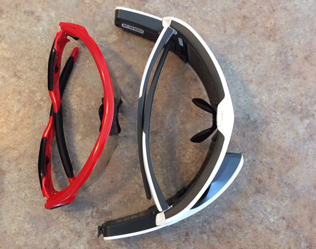 The glasses weigh about 90 grams, with battery, or about 50 grams more than my Oakley Radarlocks. I noticed the additional weight and fit difference for the first two runs but then the glasses felt normal. You are announcing yourself as a triathlete to those who see you running in them.